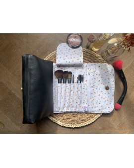 Cette trousse à maquillage dispose d'une trousse de rangement et d'un long rabat avec plusieurs possibilités de rangement.